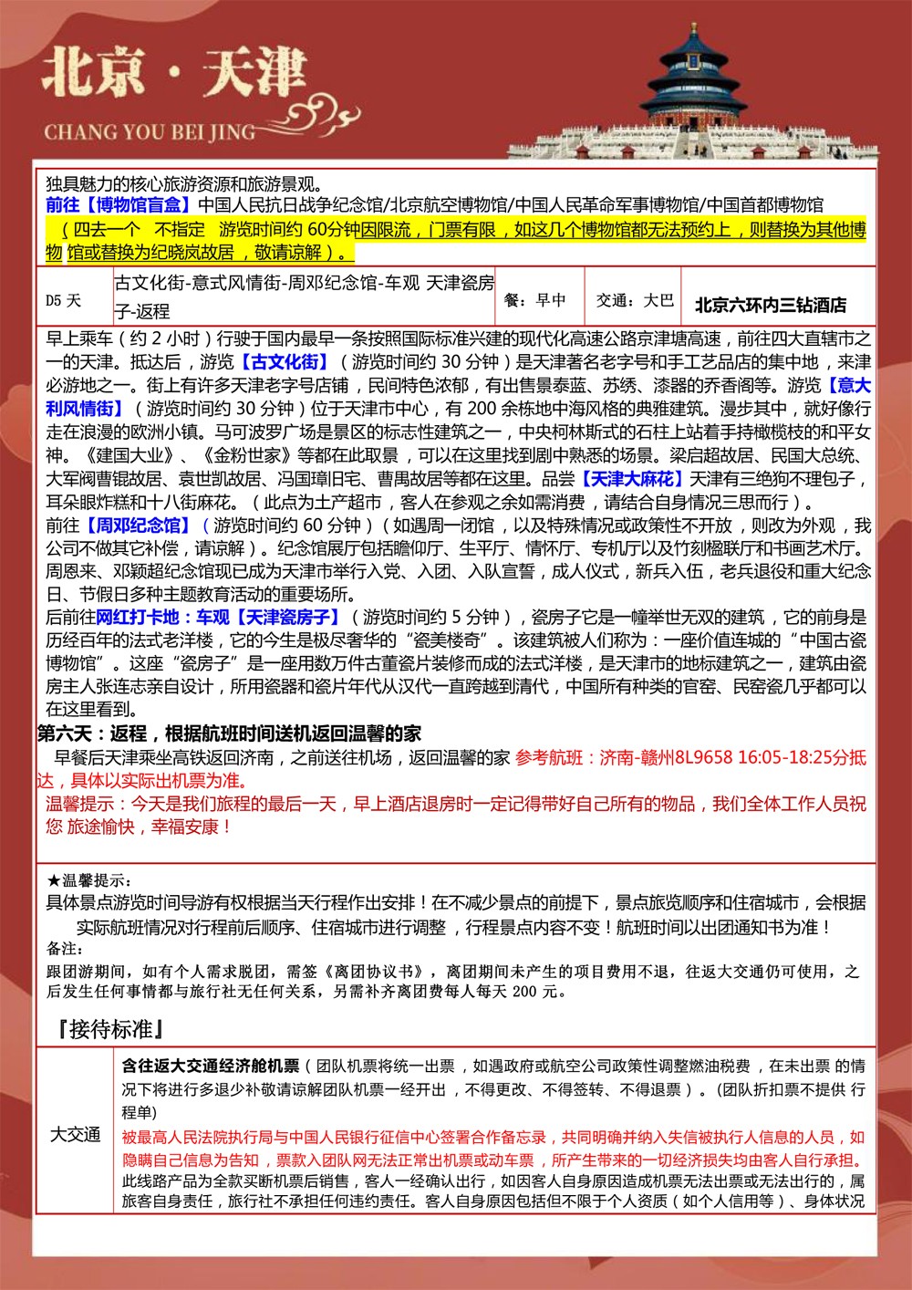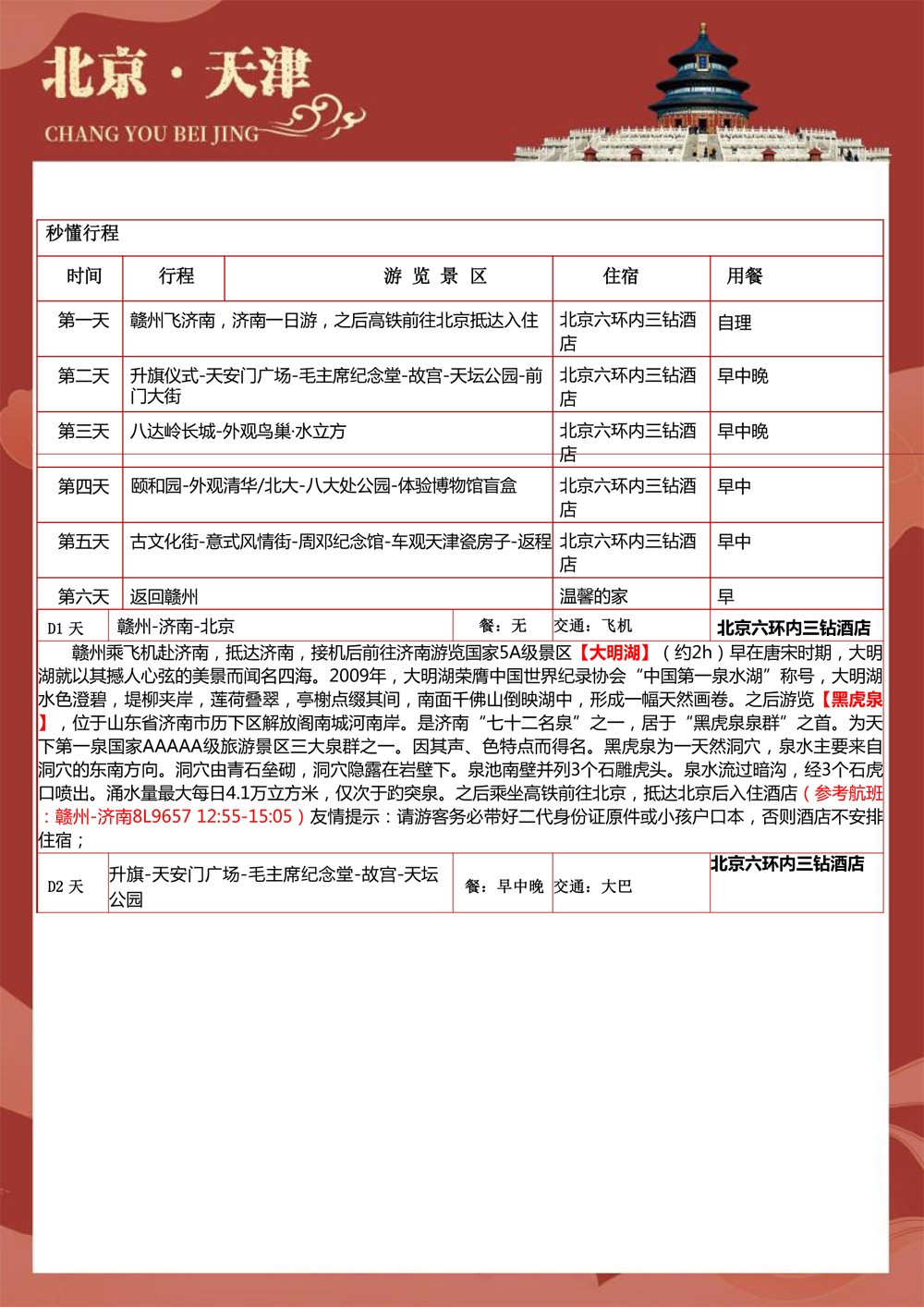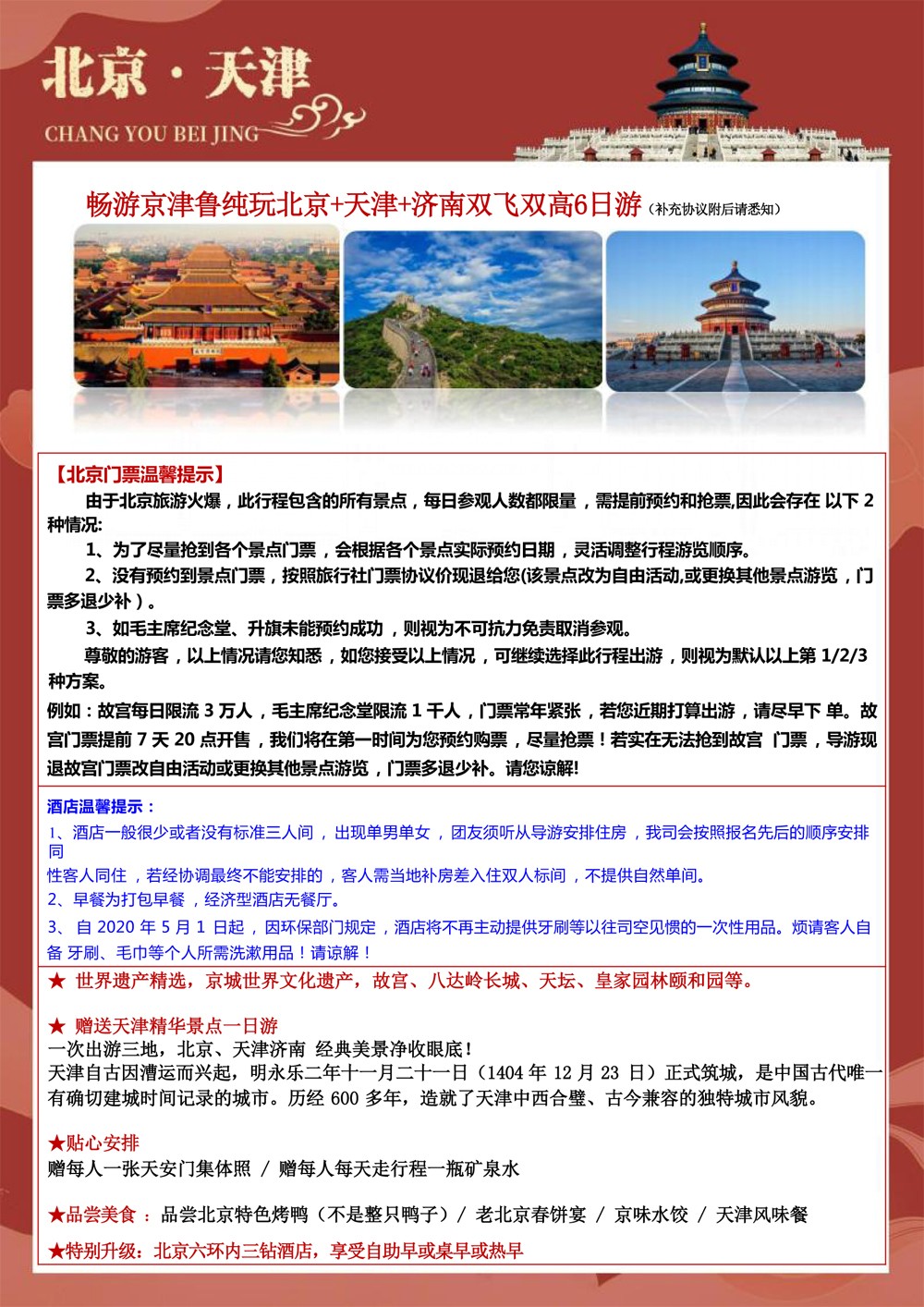 纯玩北京+天津+济南双飞6天-2699元