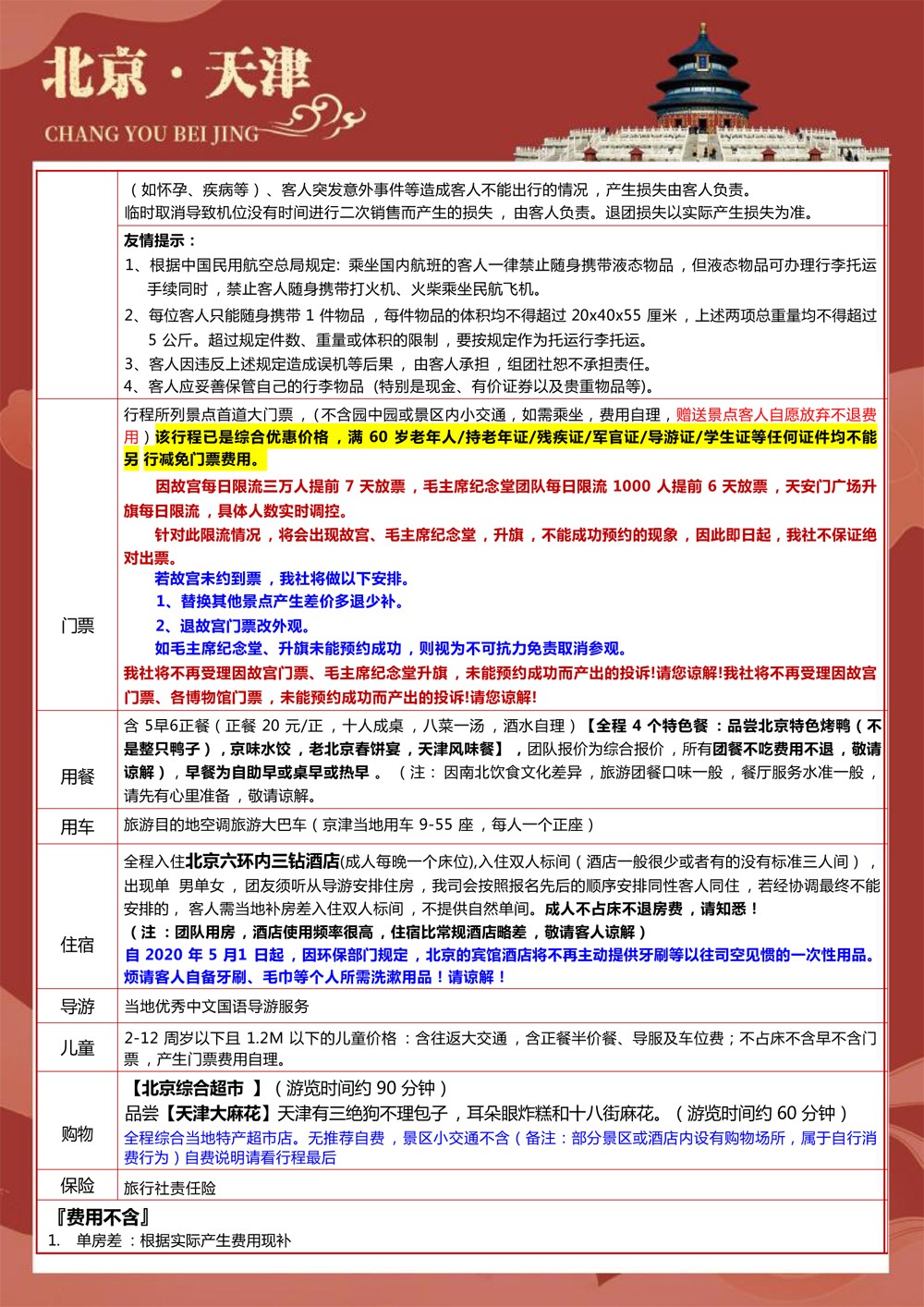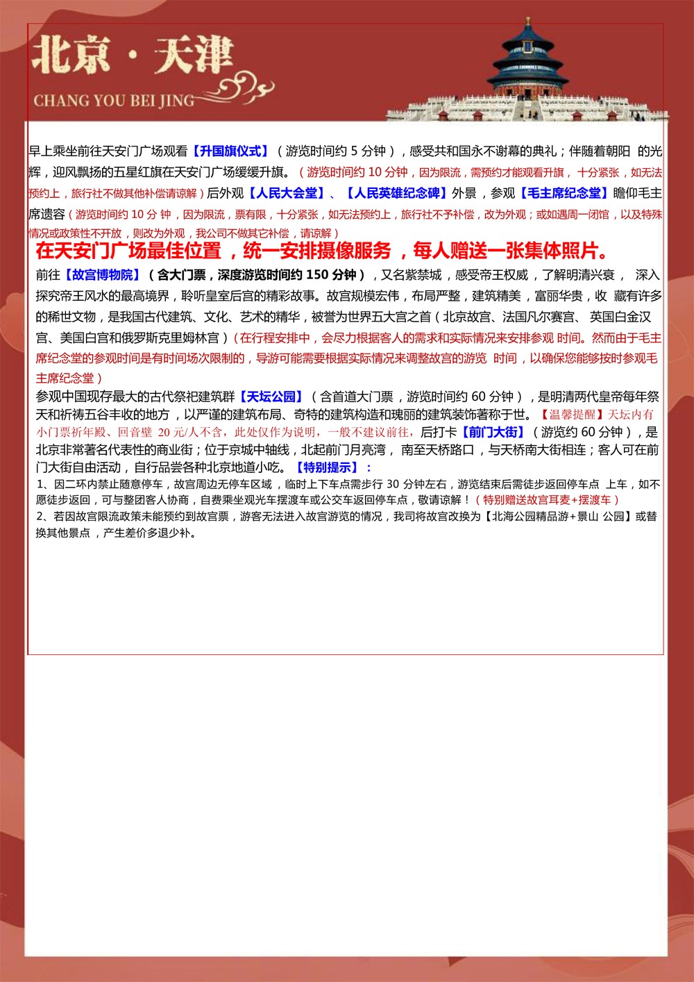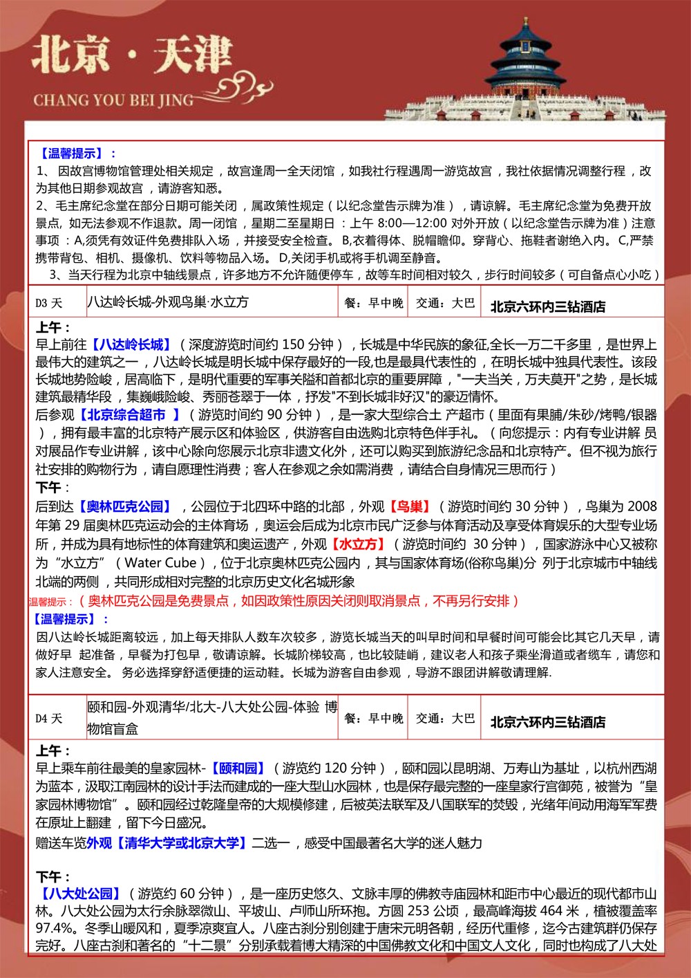 纯玩北京+天津+济南双飞6天-2699元