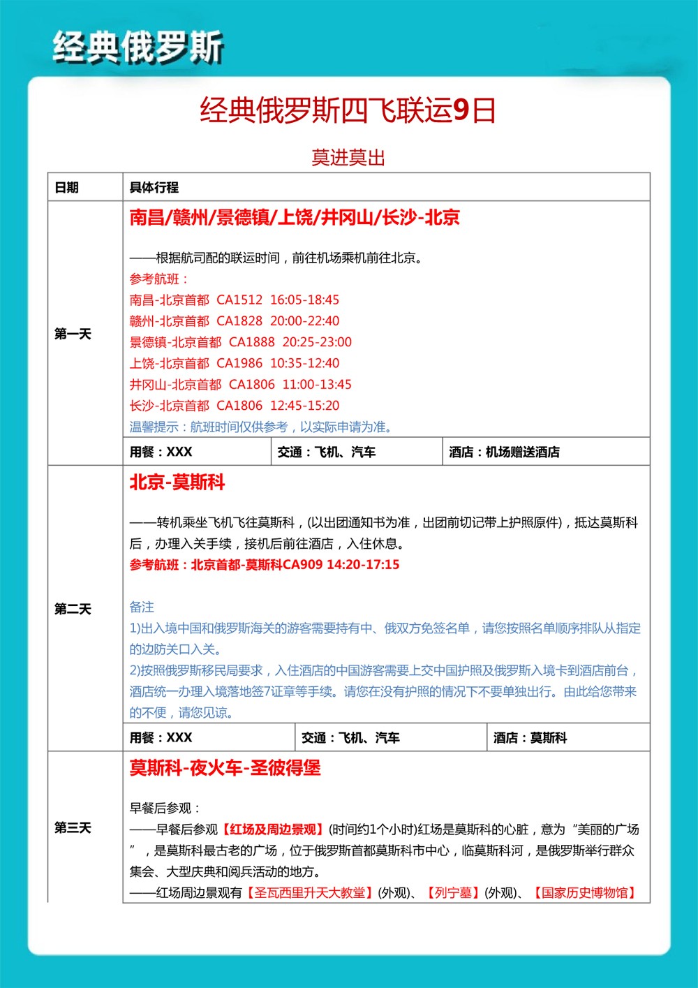 经典俄罗斯四飞9日游(6)--4599