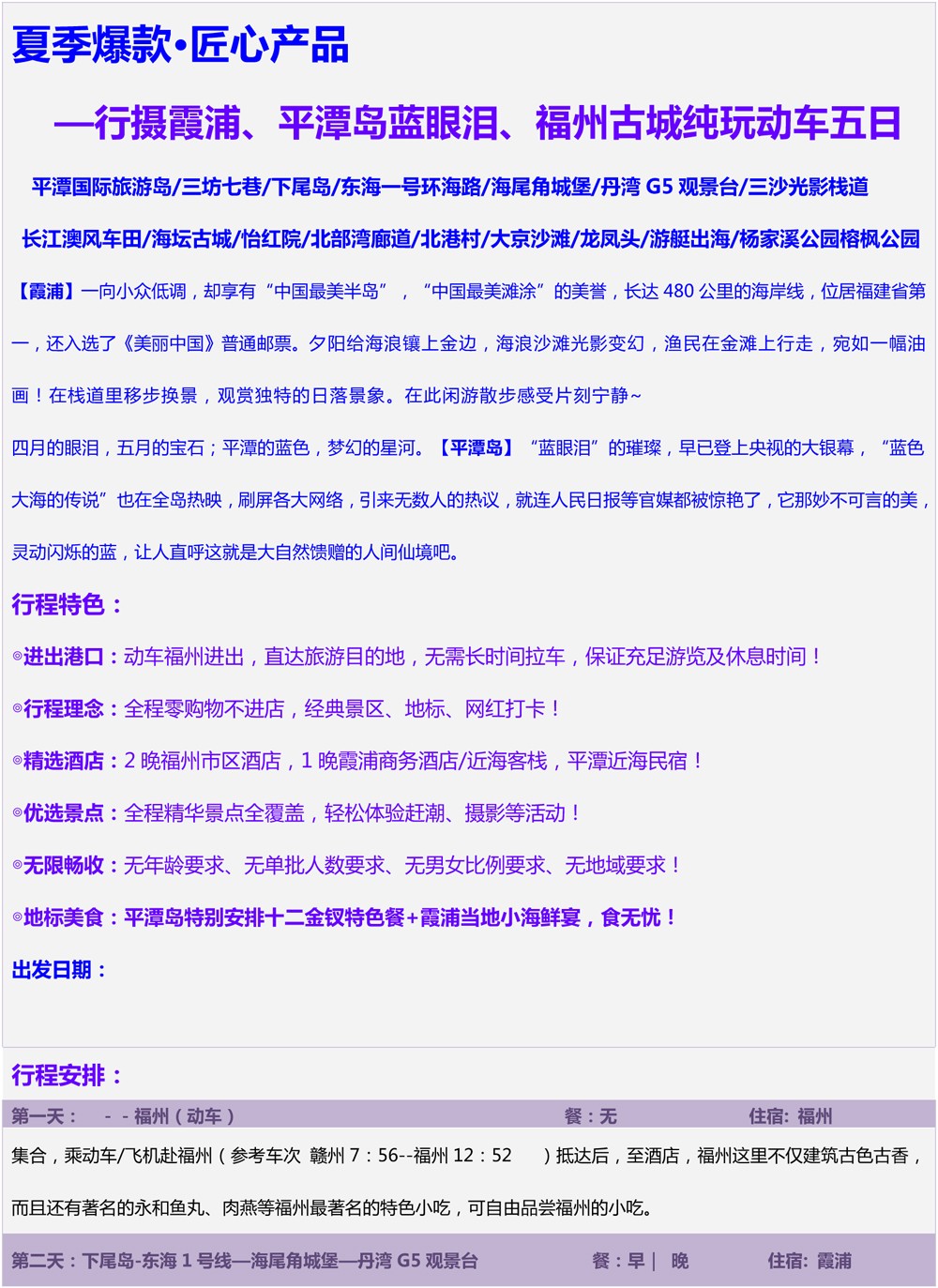 福建平潭岛蓝眼泪动车纯玩五日--1588元