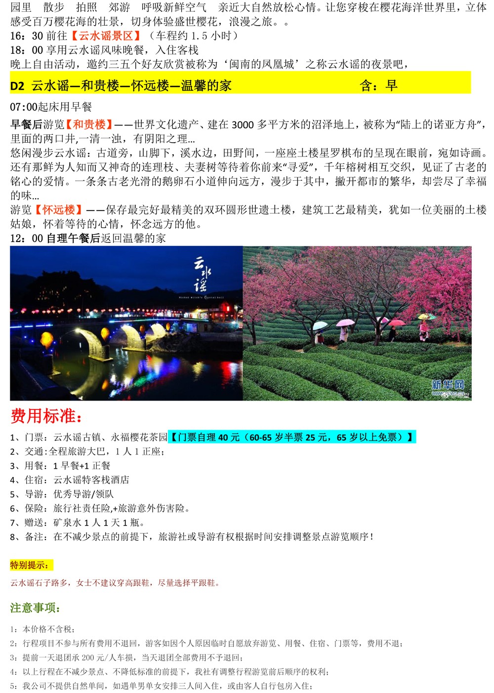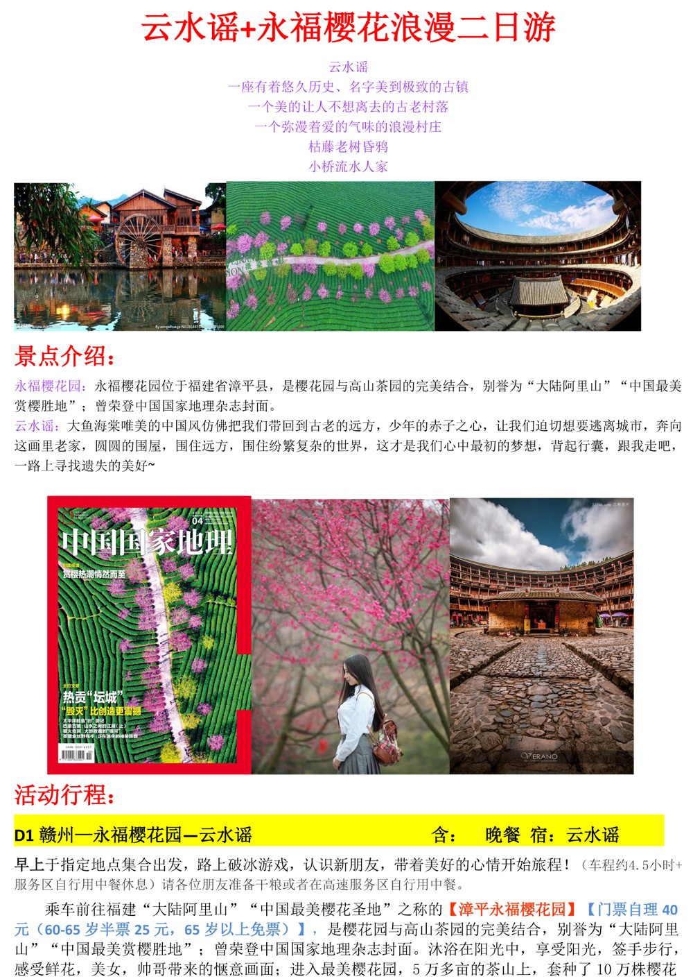 云水谣+永福樱花园2日游--398元