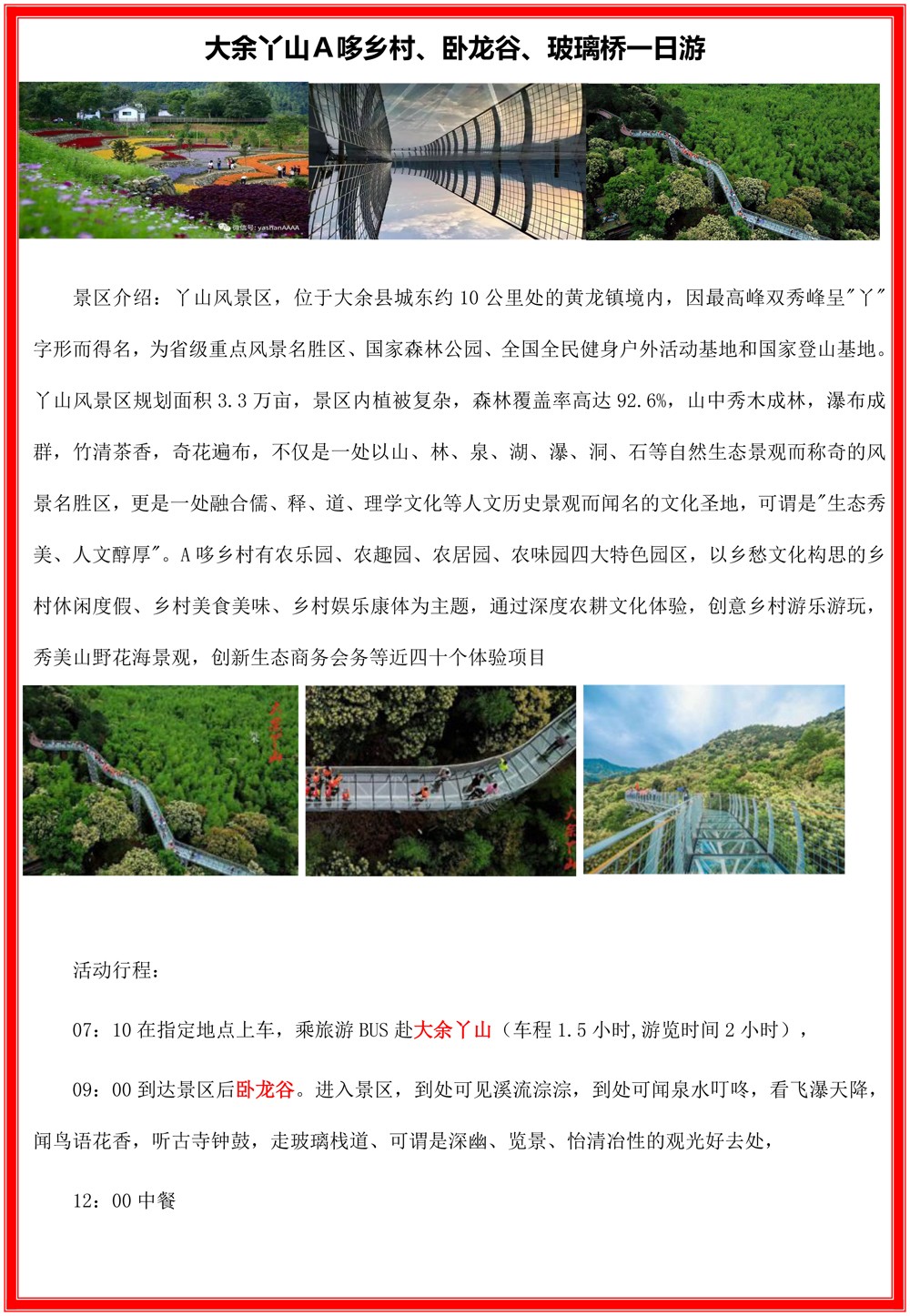 大余丫山A哆乡村、卧龙谷、玻璃桥一日游