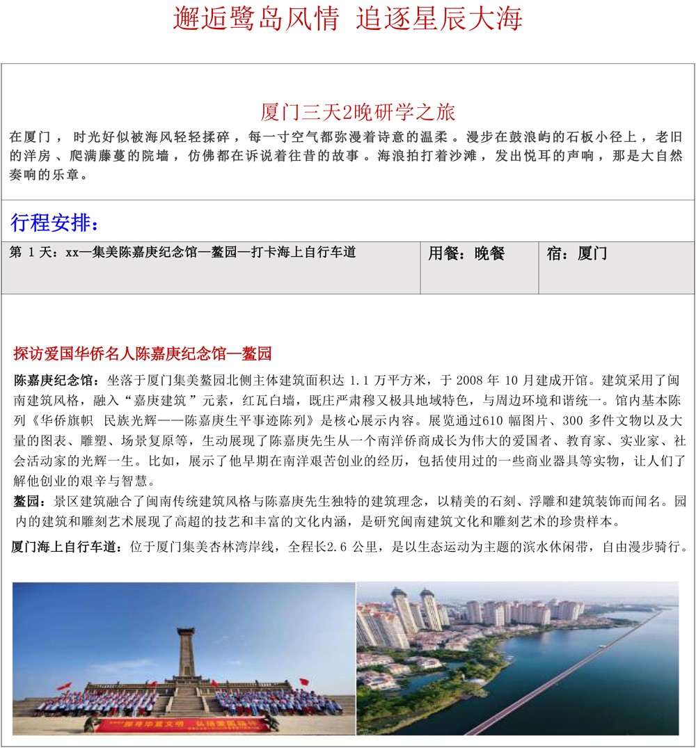 厦门三天研学