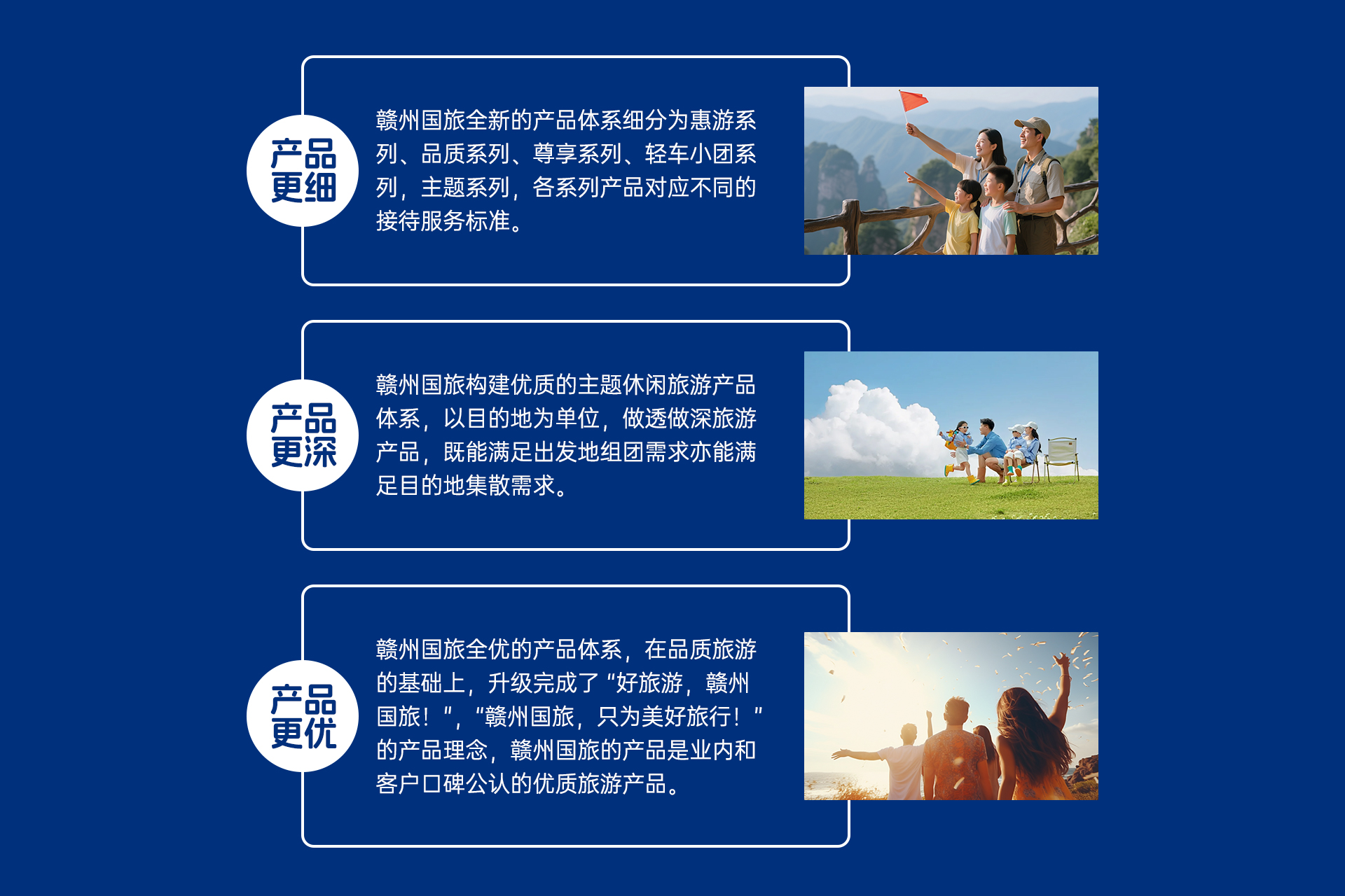 在赣州市区及18县、市拥有营业网点近40家,员工200人,储备专职中高级导游30人,与近千家旅行社建立合作关系,2025年营业额近5000万元,年接待游客10万人次。