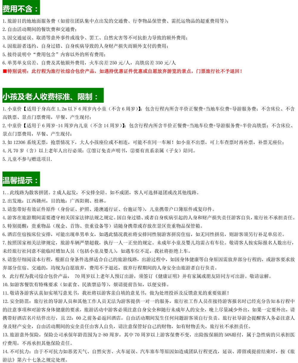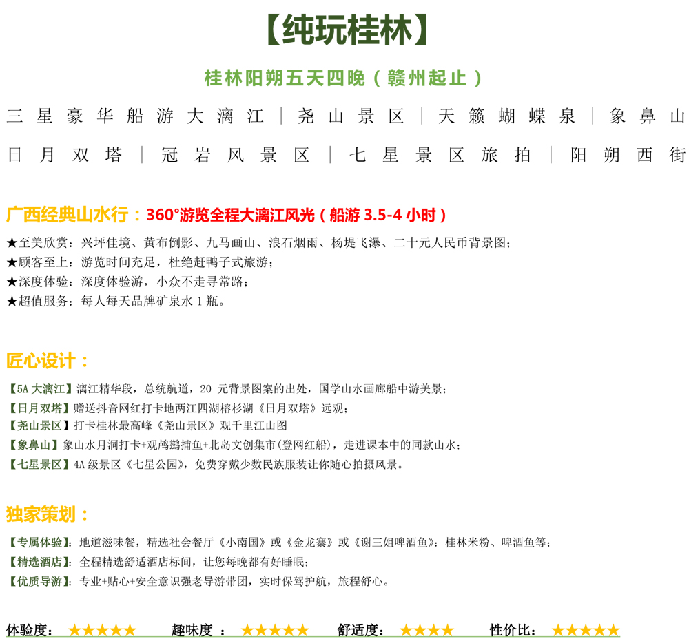 (赣州起止)【纯玩桂林】桂林阳朔品质5天--1580元