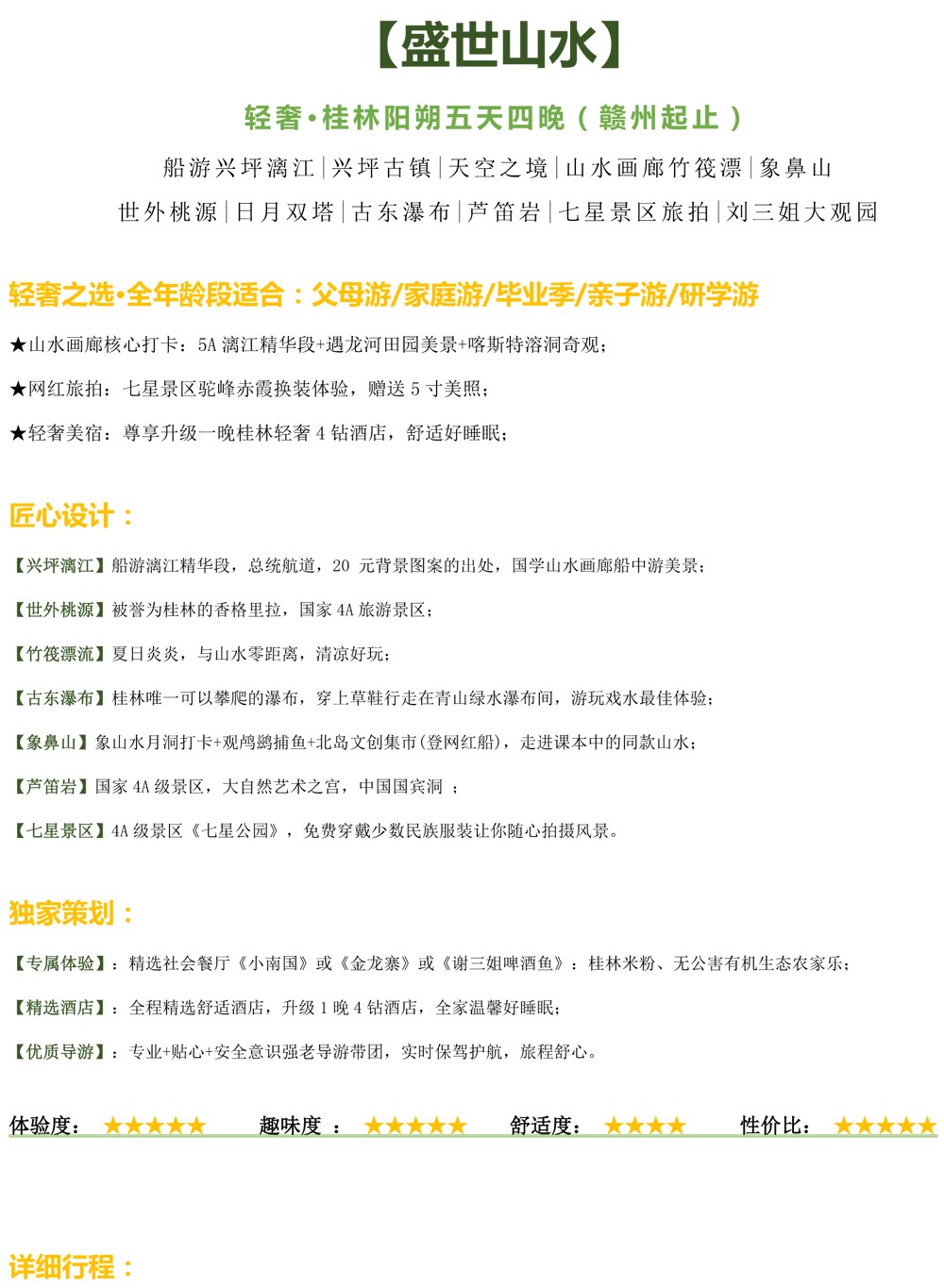 (赣州起止)【盛世山水】桂林阳朔5天--1780元