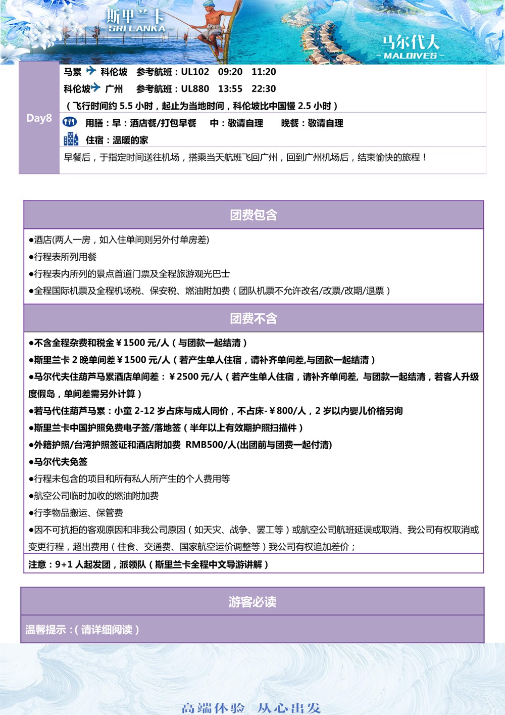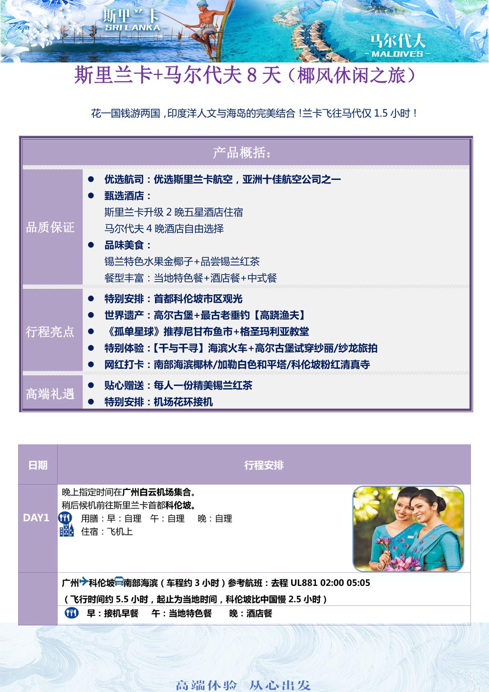 斯里兰卡+马尔代夫8天(斯马▪椰风休闲之旅)广州起止 -9999