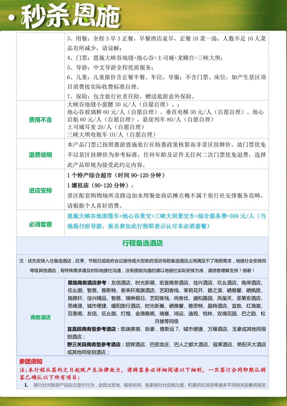 秒杀恩施-2026活动班双卧6天--1680元