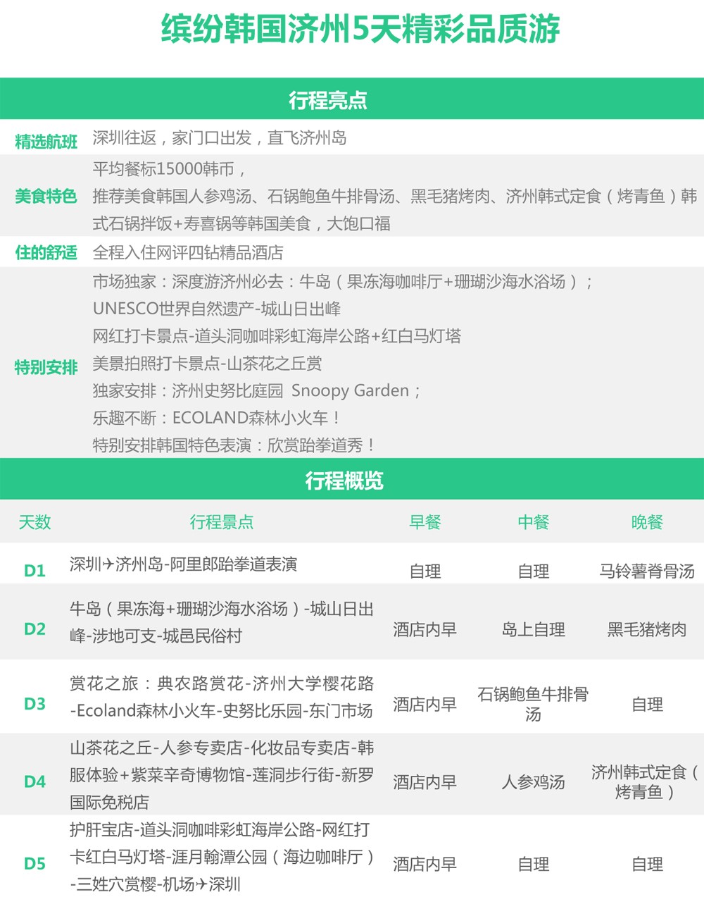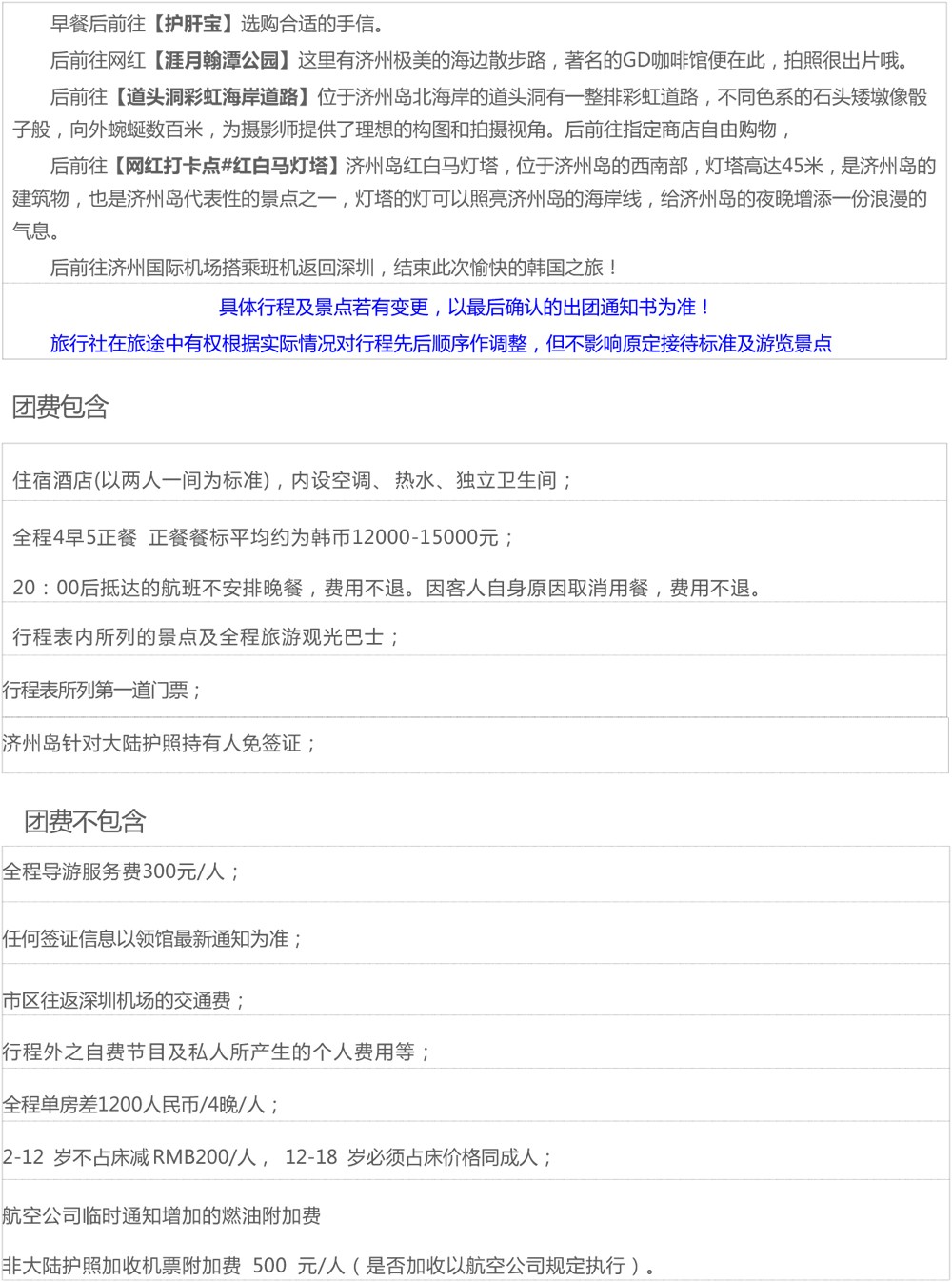缤纷韩国济州岛五天精彩品质游(深圳往返)--3180