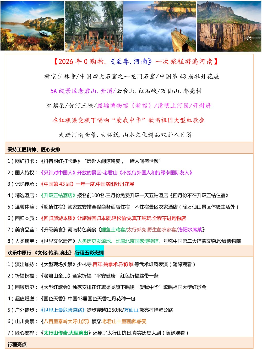 《至尊河南》零购物双动卧八日游--1980元
