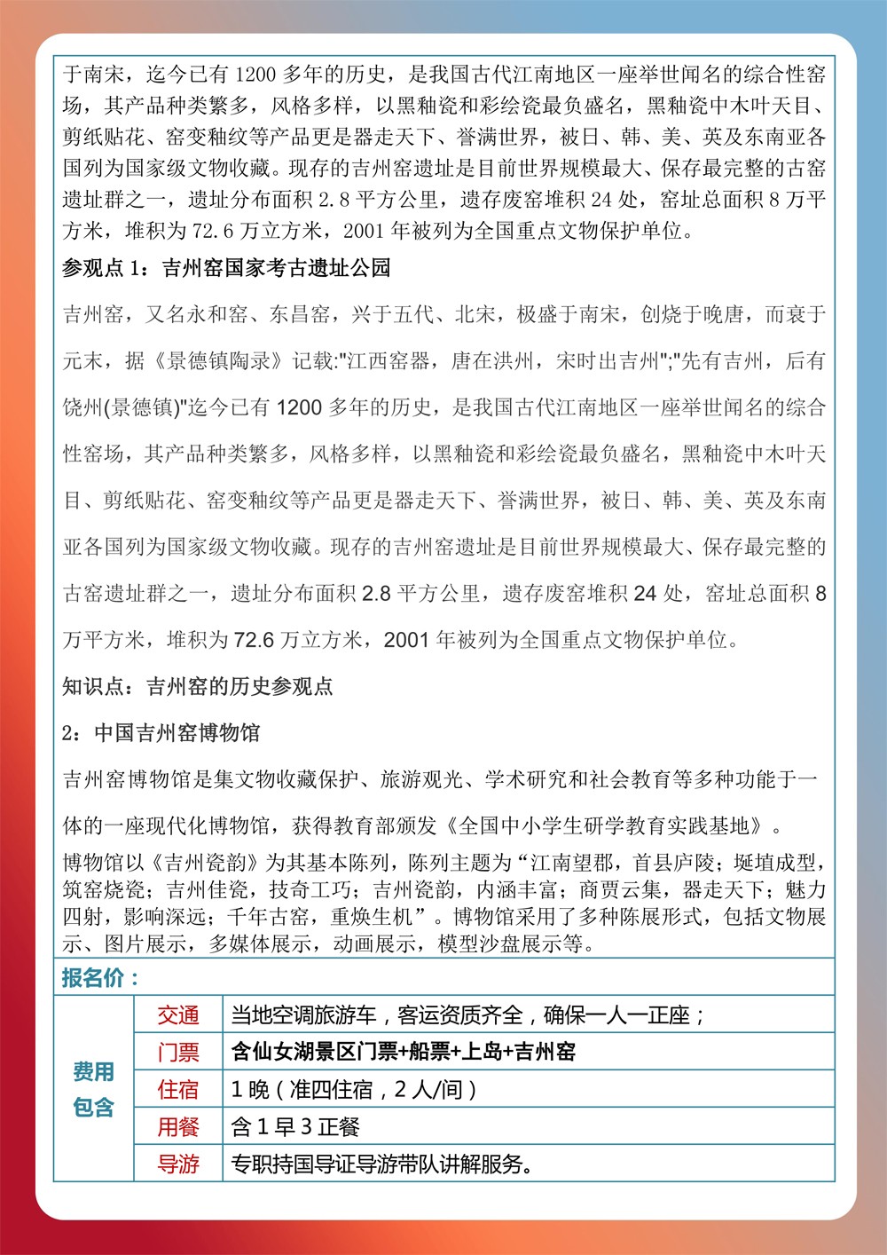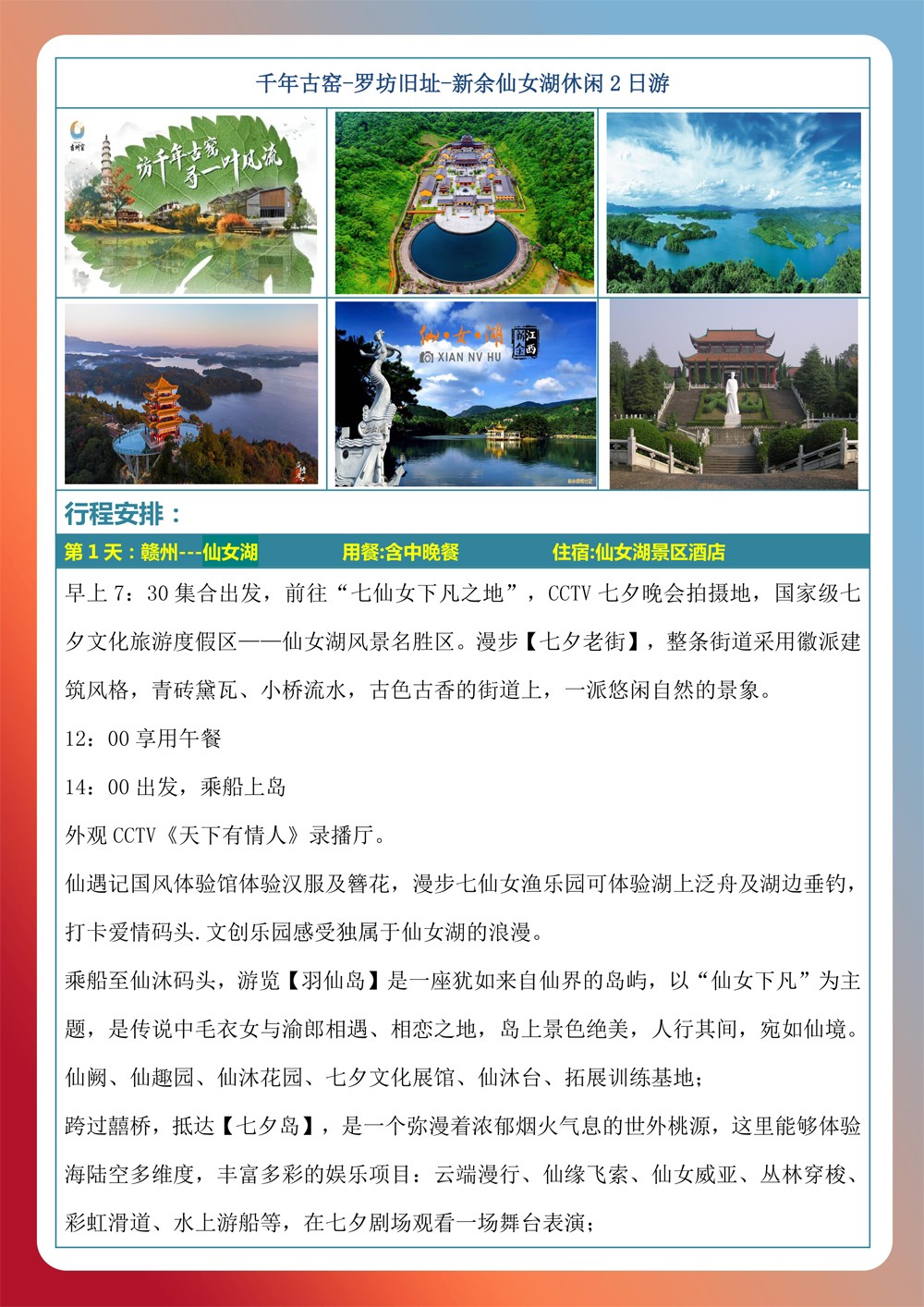 千年古窑-罗坊旧址-新余仙女湖休闲2日游
