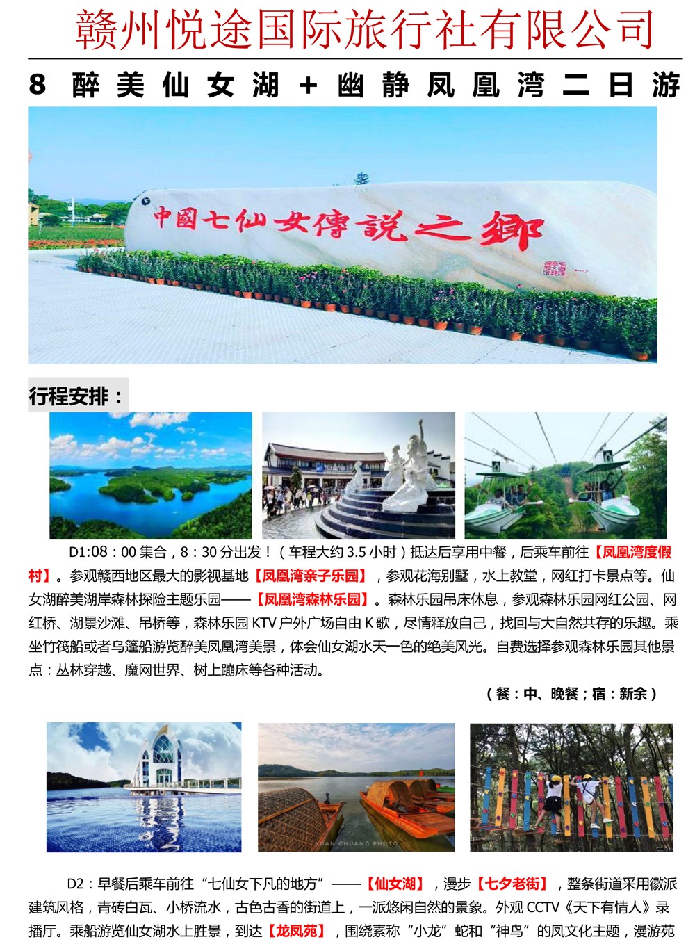 醉美仙女湖+幽静凤凰湾二日游