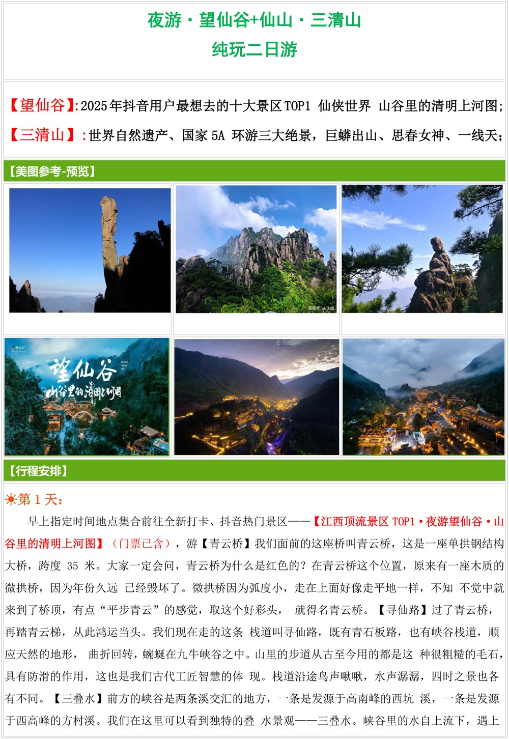 夜游·望仙谷+仙山·三清山 纯玩二日游