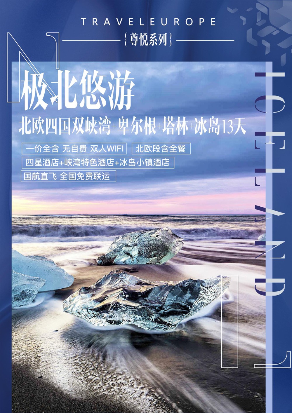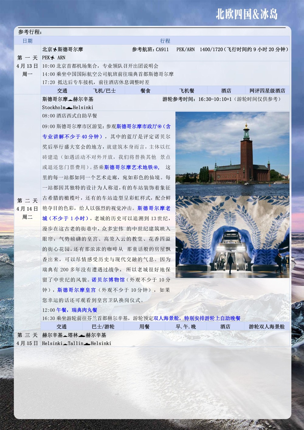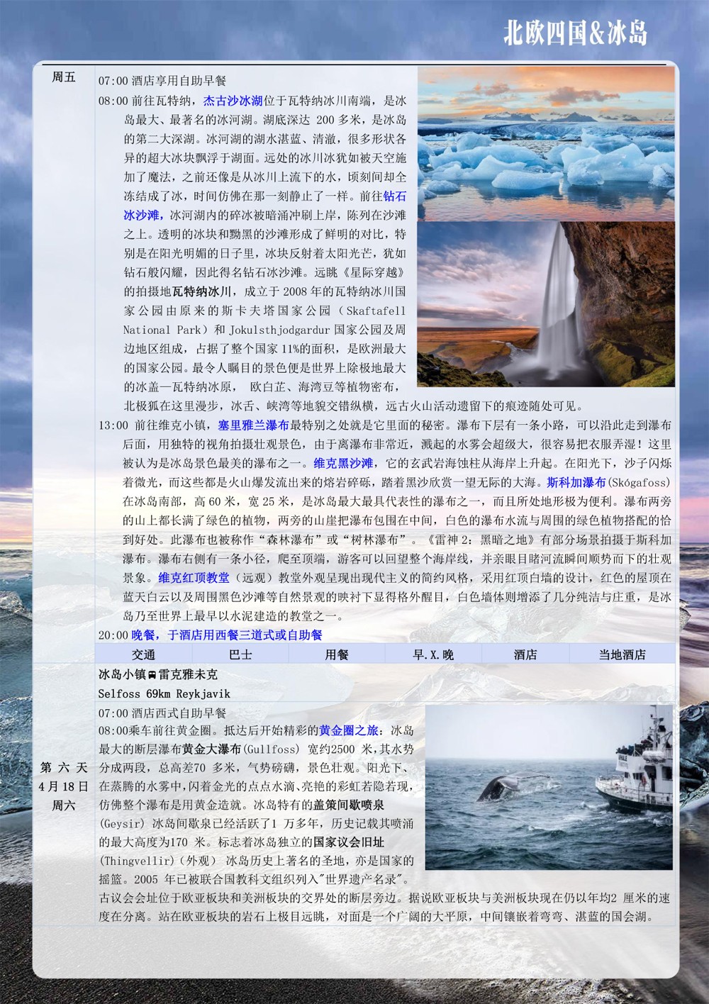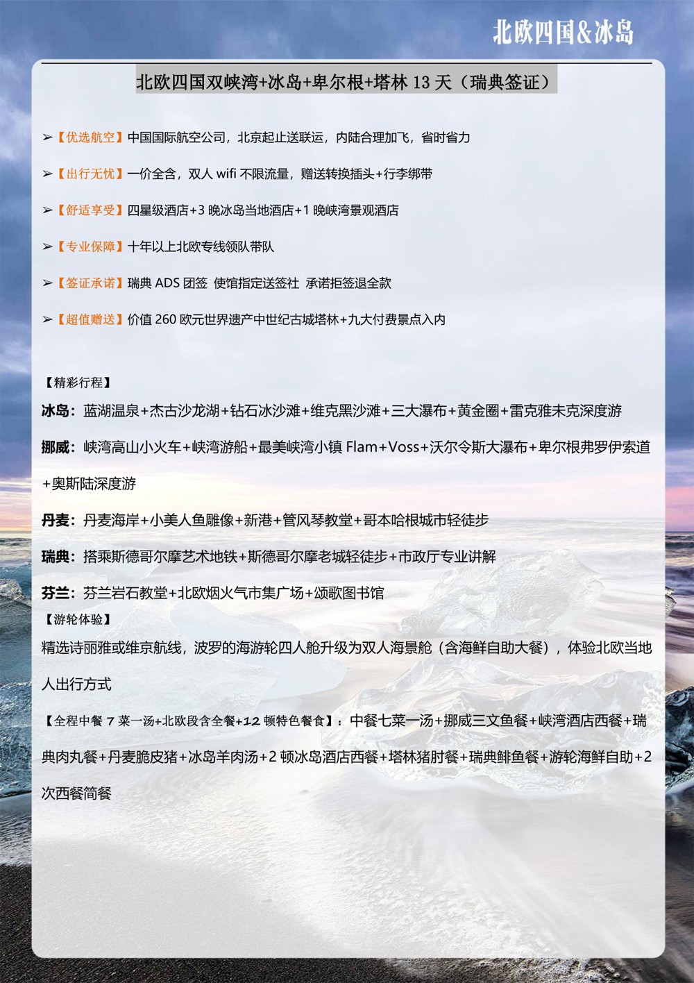 北悠游 CA国航 一价全含 北欧四国双峡湾+塔林+卑尔根+冰岛出海观鲸+杰古沙龙湖+蓝湖温泉11晚13天-49999元