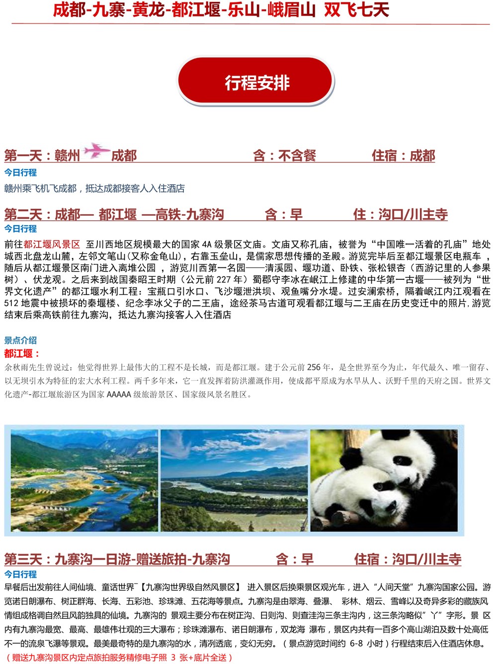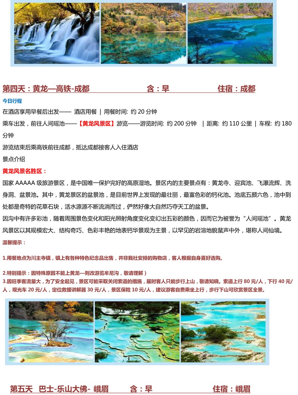 成都-九寨-黄龙-都江堰-乐山-峨眉山 双飞七天--2980