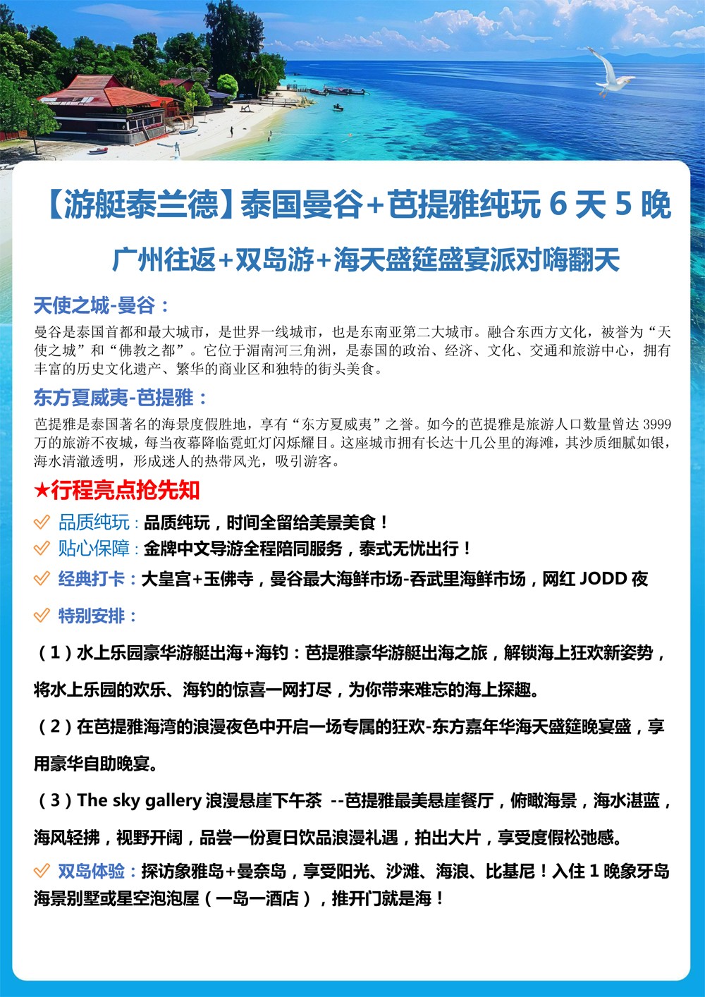【游艇泰兰德】广州往返+泰国曼谷+芭提雅海天盛宴纯玩6天5晚--2999