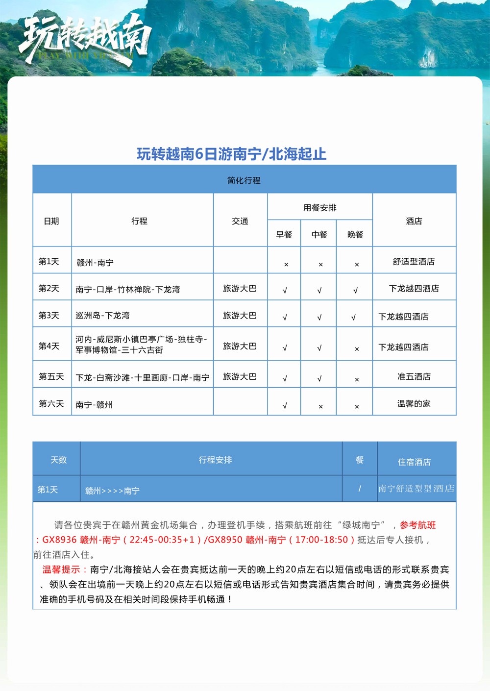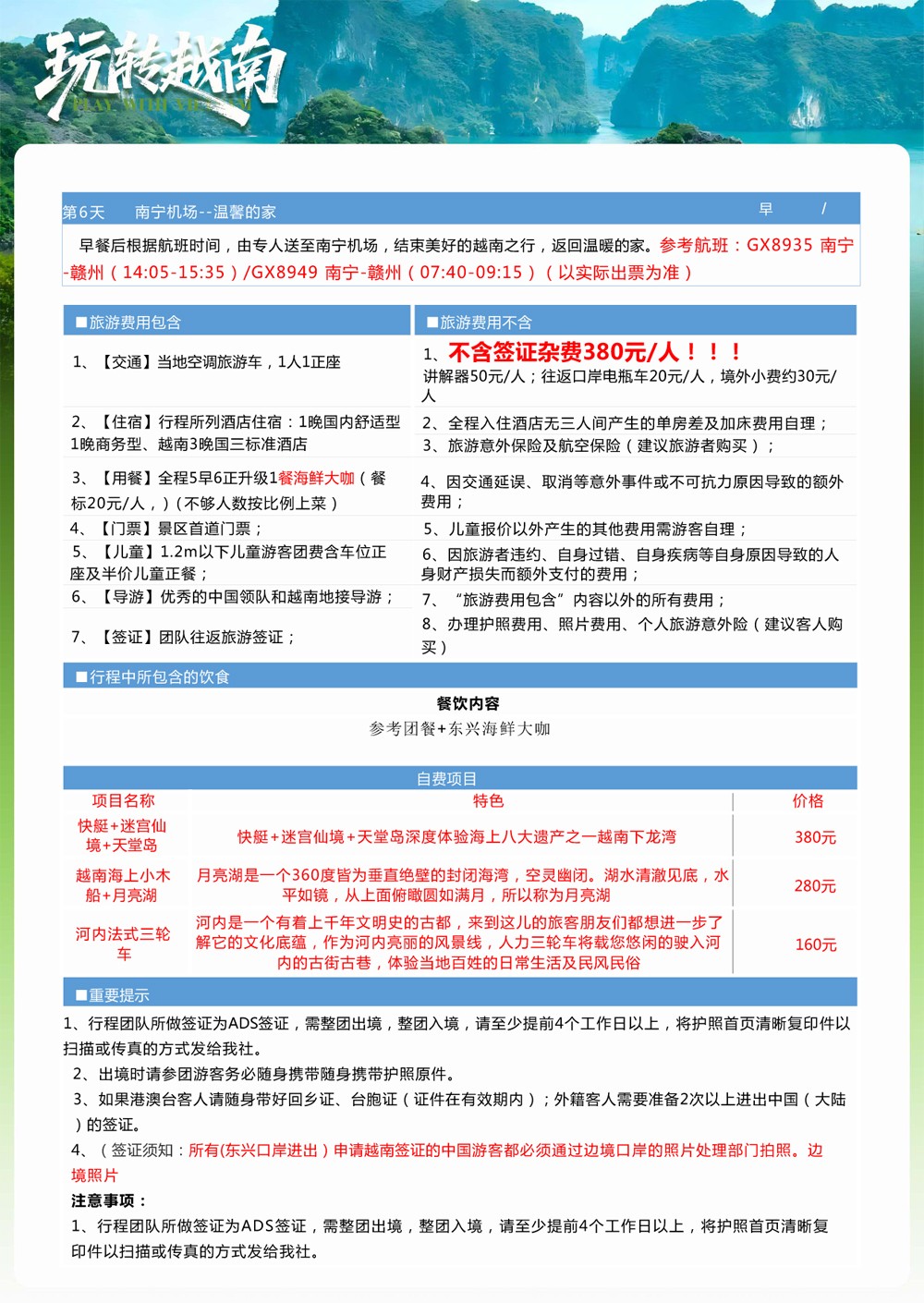 玩转越南双飞6日游(赣州起止)---1480元